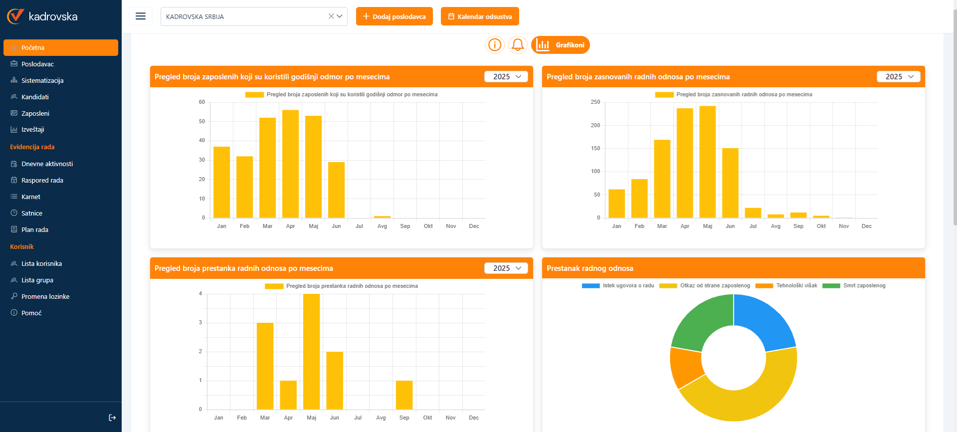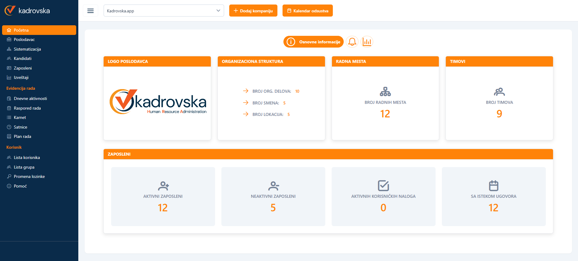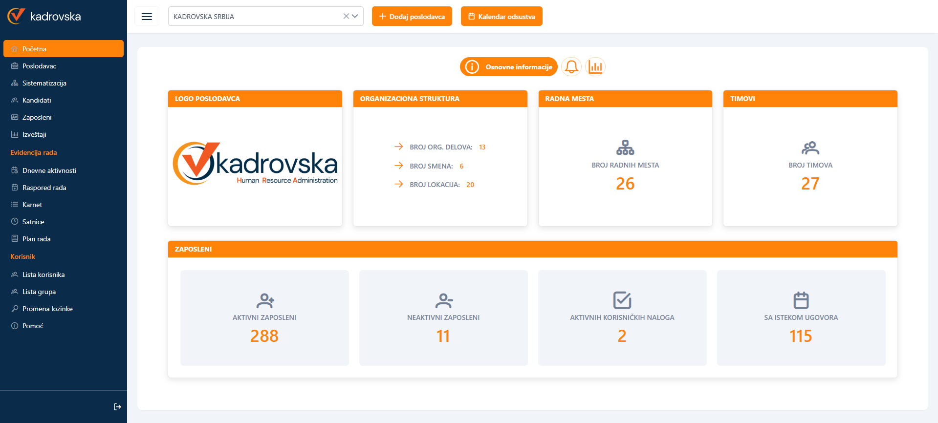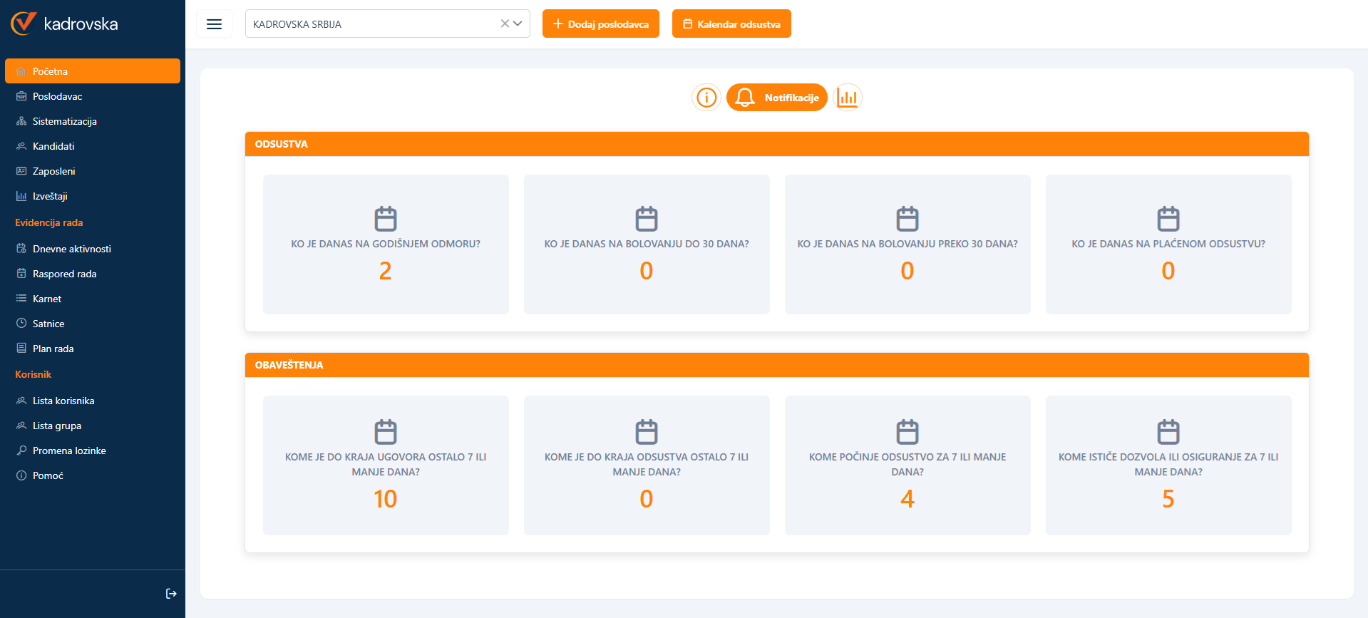 Kadrovska je u cloudu i to omogućava svima koji obavljaju delatnost na različitim lokacijama da u svakom objektu šef objekta direktno vrši odobravanje godišnjih odmora, štampanje dokumentacije i evidenciju rada.
