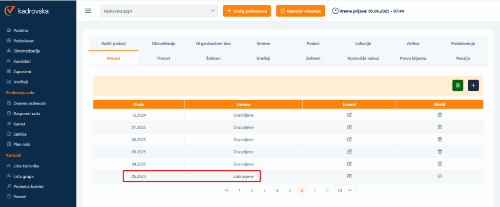 Biranjem opcije Zabranjeno u Poslodavac-Meseci zabranjujete da se u tom mesecu: