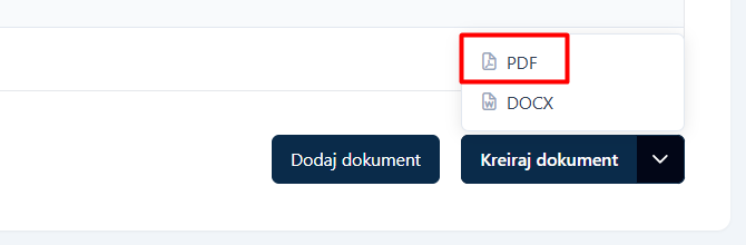 Dodali smo opciju biranja formata kod izrade dokumenta, pa se sada dokumenta osim u word formatu mogu kreirati i u PDF formatu.