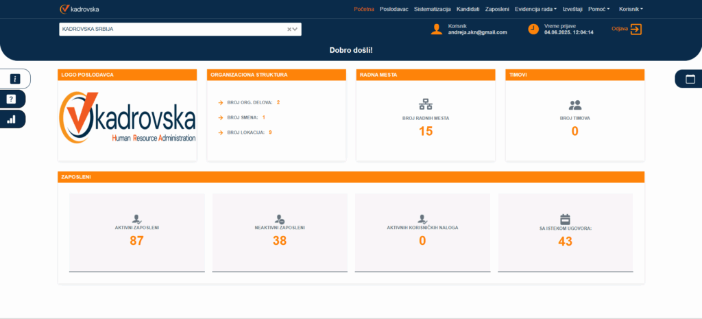 U ovom tekstu ćemo obraditi osnovne funkcionalne novitete a sve predloge i ideje možete nam poslati na podrska@kadrovska.app