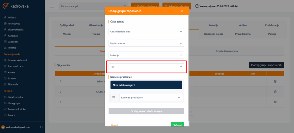 Dodali smo mogućnost da se određivanje verifikatora (lice koje odobrava odsustvo) vrši i na nivou tima.